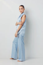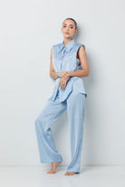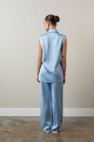 Elevate your wardrobe with the Cordial Top, crafted from luxurious light blue satin that drapes effortlessly over the body. Designed with a soft sheen that catches the light from every angle, this piece combines elegance with modern minimalism.