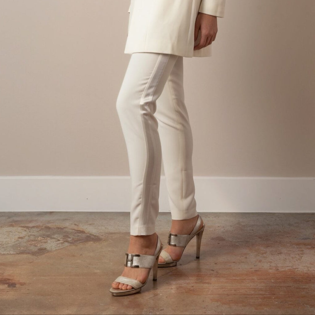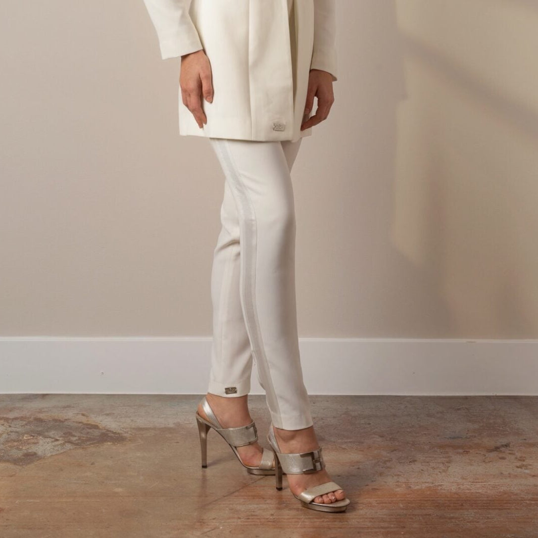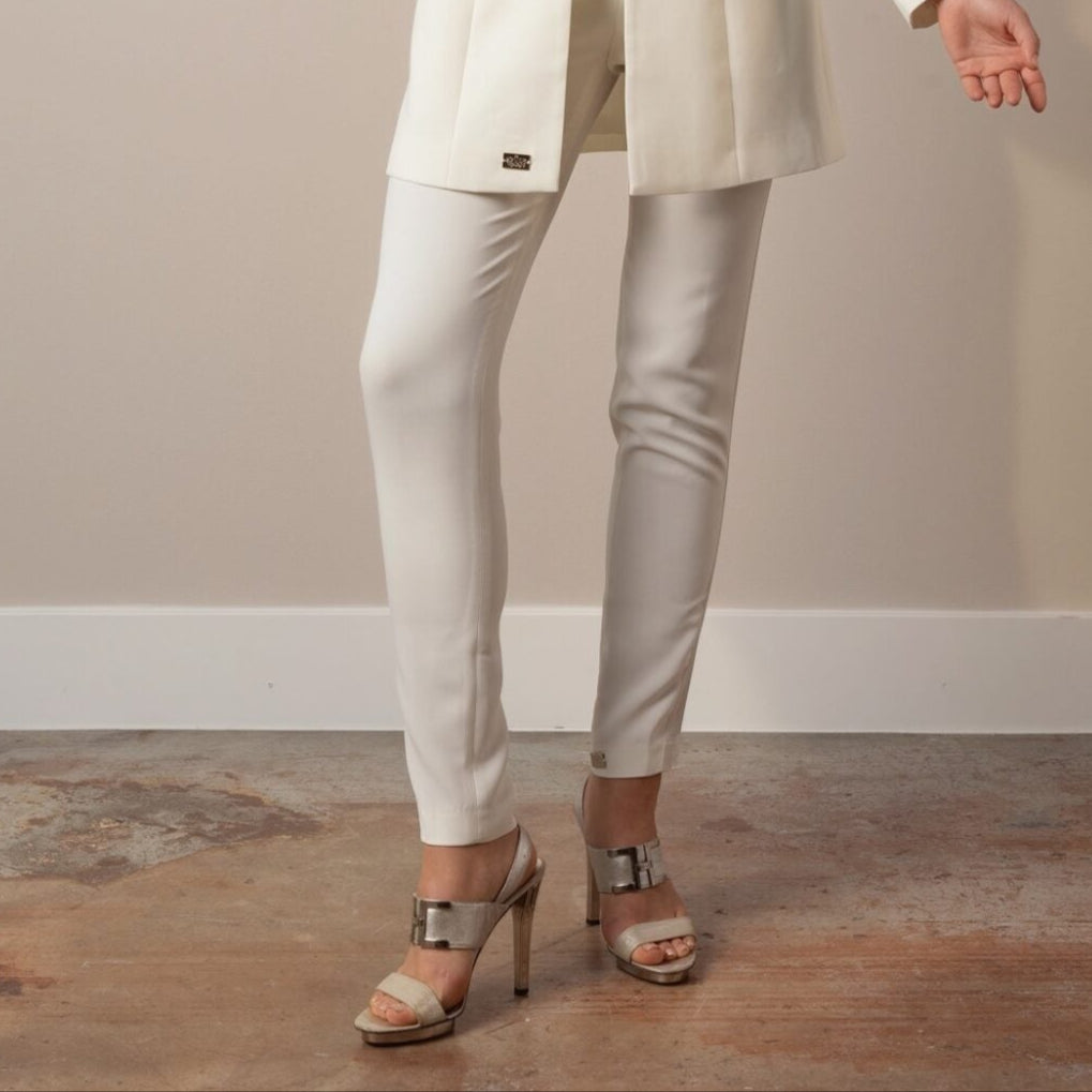 Clean lines and soft structure define these refined white trousers. Designed to flatter the waist and elongate the legs, they pair easily with everything elevated.