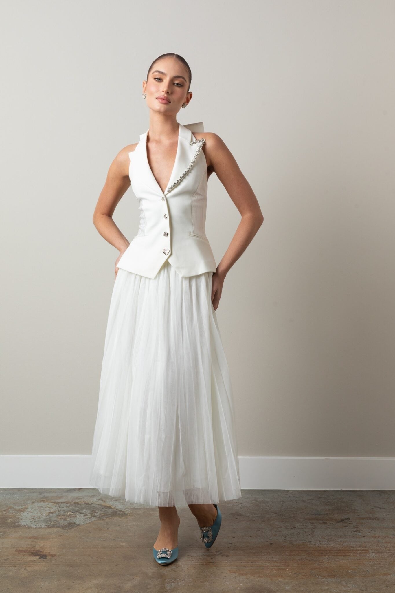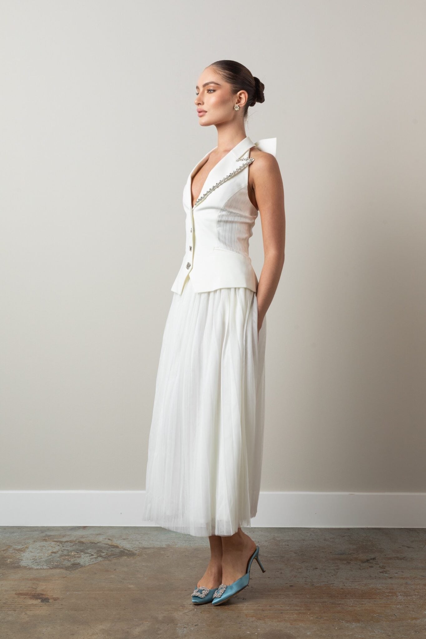 Soft femininity meets floating movement. This two-piece set flows with every step, offering a romantic silhouette that feels light and graceful.